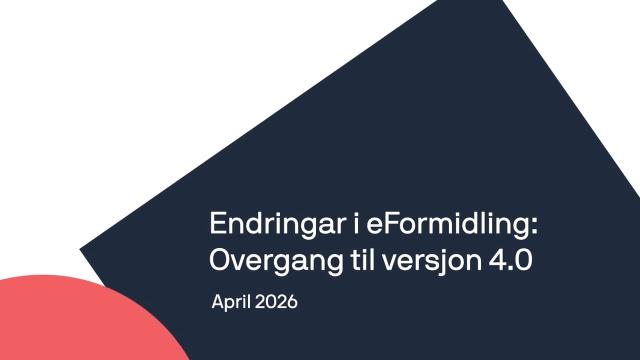eFormidling: Stegvis guide for overgang til integrasjonspunkt 4.0 07. april 2026 eFormidling har gjort fleire forbetringar, og nye endringar har vore varsla tilbake i mai 2025. Nyaste versjon (4.0) er ei heilt nødvendig endring som alle som nyttar eFormidling må over på før 31. mai. Sjå stegvis videoguide her.